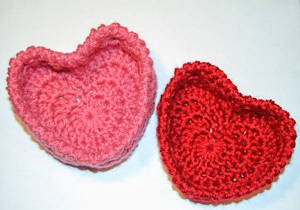 These baskets would be great as a centerpiece or to fill with candies for your valentine! Pattern is from Kara of one of my favorite crochet blogs, Petals To Picots.